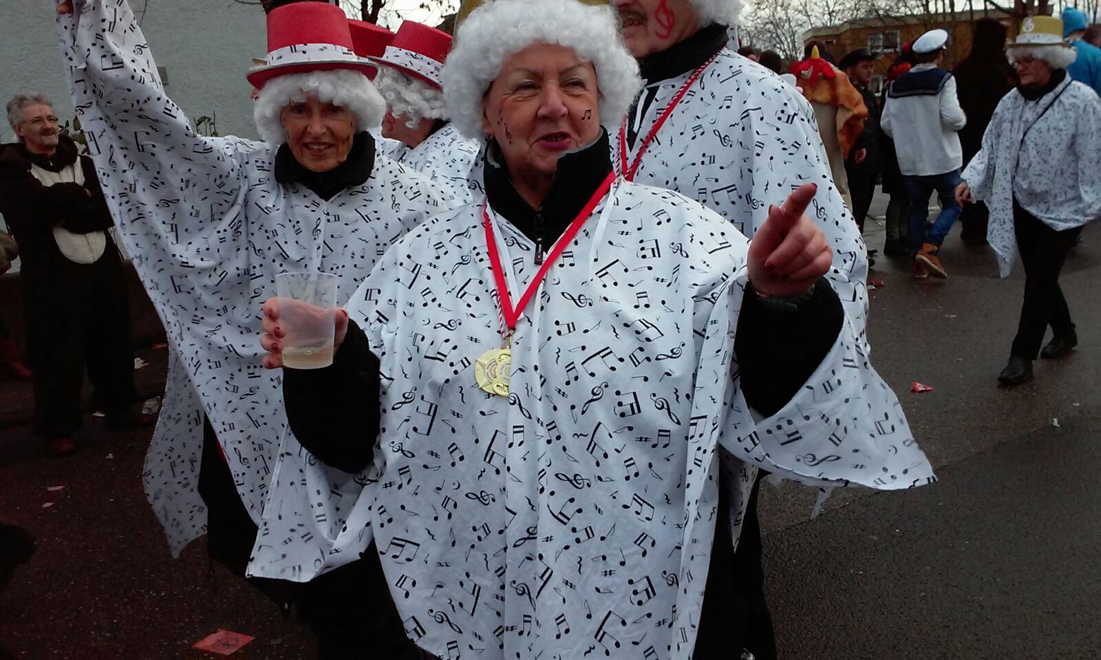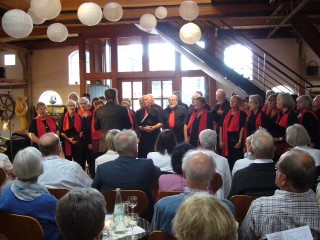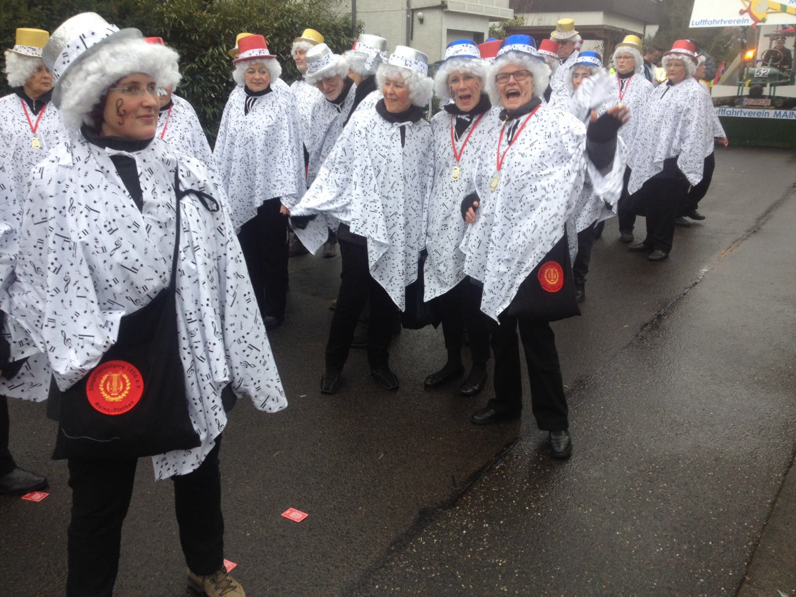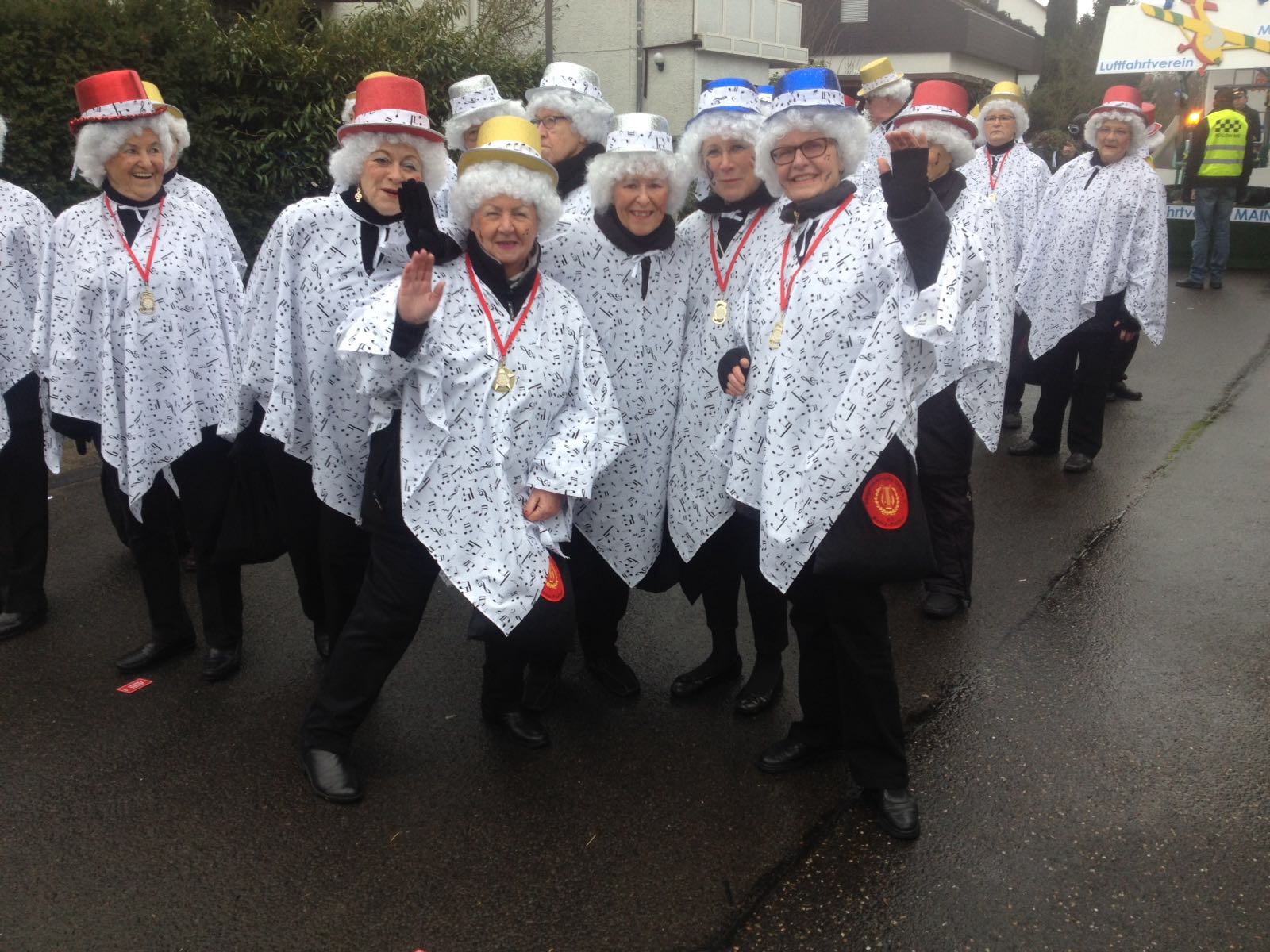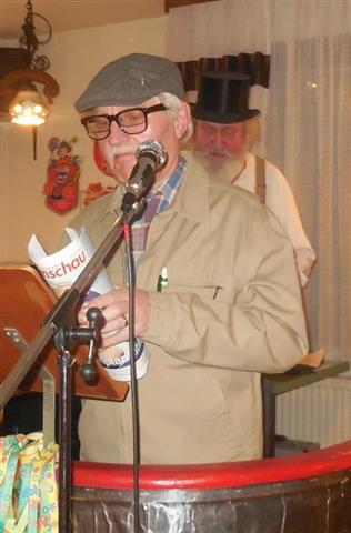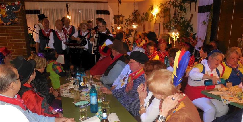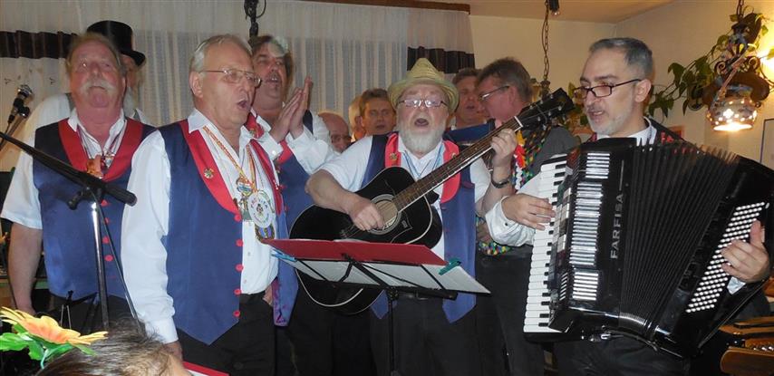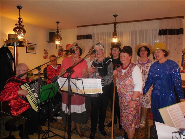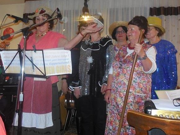 ![]() Begrüßung zum Kappenabend durch Werner und unsere Vorsitzende Monika. ![]() Als erster Vortrag: Das Protokoll von Erika. ![]() Gute Stimmung bei der Gesangsgruppe "Die Reservos". ![]() ![]() Rentner Harald mit der Rentner-Bravo. ![]() ![]() Reinhold machte Urlaub und Peter ist der wahre Elvis. Einmarsch durch die Mitte: ![]() Die Golden Girls zum Jubiläum "50 Jahre Kappenabend" der Sängervereinigung. "Wir steh'n in Finthen für Gesang schon 160 Jahre lang! Und dazu kommt, ganz überragend, 50 Jahre Kappenabend!" ![]() Teilnahme am Finther Zug der Lebensfreude ![]() "De Zuch kimmt." ![]() Die Anführerin: Monika, unsere Vorsitzende. ![]() Gute Stimmung und "Helau!". ![]() Jahresabschluss 2015: Weihnachtsfeier Der Nikolaus kommt und dankt der Vorsitzenden Monika Schnell und unserem Dirigenten für die geleistete Arbeit das ganze Jahr über. Zum Buffet hat jeder etwas beigetragen. Bayerische Weihnachtslieder im Dialekt, vorgetragen von zwei Sängerinnen aus unserem Chor, die aus der alpenländischen Landschaft stammen.
