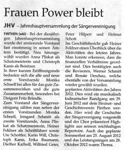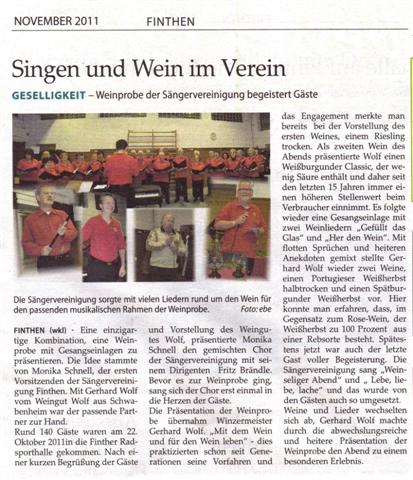 Werner singt nach der Wanderung für und mit allen. Jahreshauptversammlung 2012 ![]() Pressebericht im Blickpunkt. Fastnacht 2012 Musikalische Weinprobe 2011