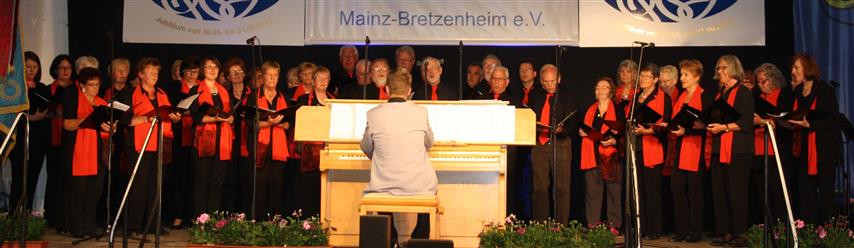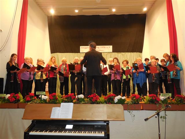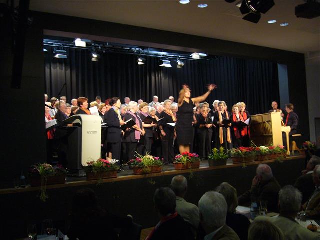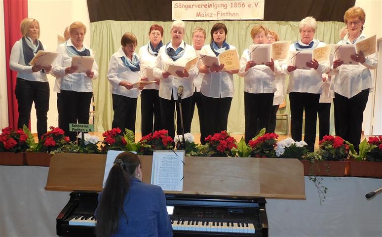 Am Piano: Die Dirigentin des AGV, Frau Éneh Schneider-Kostovski. Der gemischte Chor des AGV Mainz-Finthen.