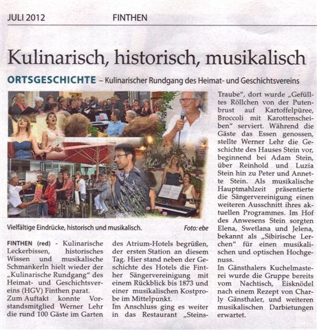 Kulinarischer Rundgang 2012 des Heimat- und Geschichtsvereins Finthen Pressebericht im "Blickpunkt" für